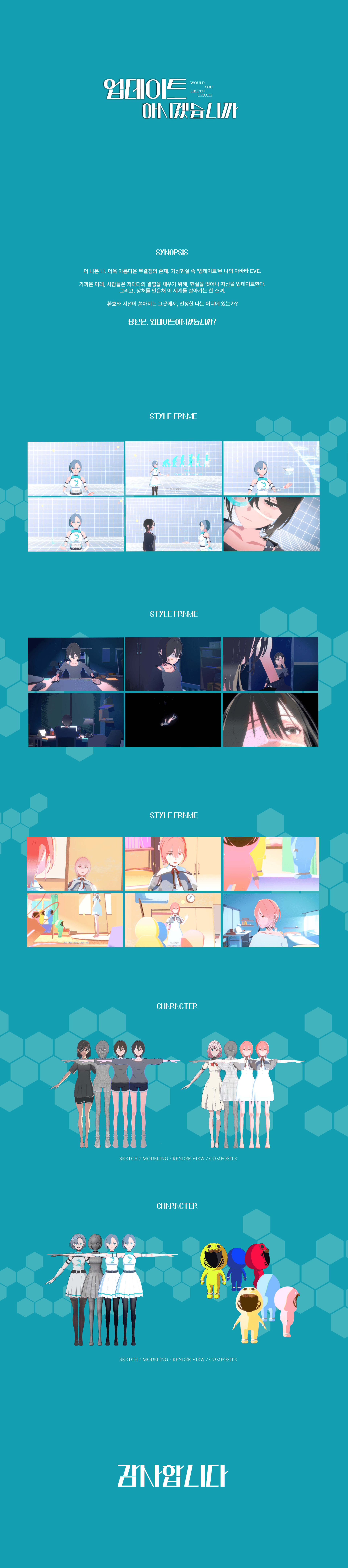더 나은 나, 더 아름다운 무결점의 존재, 가상현실 속 업데이트된 나의 아바타, EVE. 가까운 미래, 사람들은 저마다의 결핍을 채우기 위해 현실을 벗어나 자신을 업데이트받는다. 완벽한 존재가 될 기회일까? 혹은 스스로를 잃어가는 과정일까. 환호와 시선이 쏟아지는 그곳에, 한 소녀가 있다.